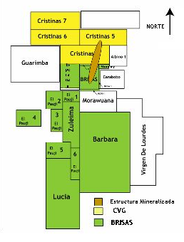 Las concesiones se encuentran en el "Kilómetro 88" Distrito Minero del Estado Bolívar, en el sureste de Venezuela. La estructura mineralizada abarca parte de la concesión Brisas y parte de las concesiones Cristinas 4 y 5. Ver Figura 1.